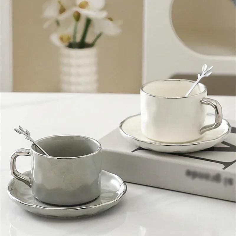 Conjunto de xícara e pires de cerâmica – Elegância em cada gole