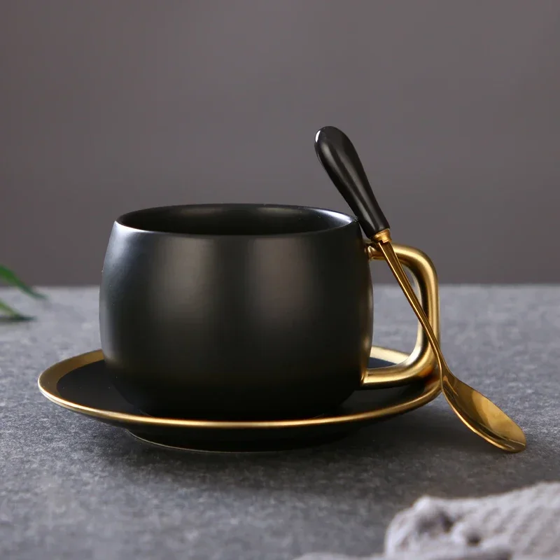 Taza de café de cerámica gradual americana de 280 ml, juego creativo de taza y platillo esmerilados, pequeña taza de té de la tarde inglesa de lujo, tazas de regalo