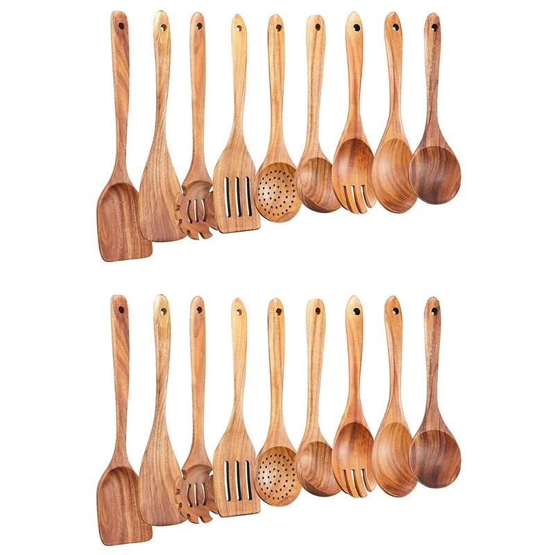 ABJI-Wooden Kitchen Utensils Set,18 Pcs Wooden Spoons For Cooking,Wooden Cooking Utensils,Wooden Spoons For Non-Stick Pan