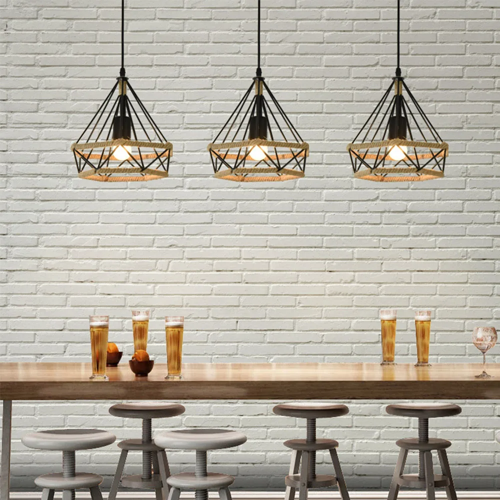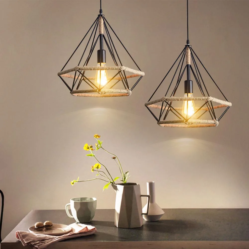 E27 Industrial Lighting Loft Pendant Light Vintage Lamp Shade Loft Coffee Bar Kitchen Hanging Pendant Light Metal and Hemp Rope