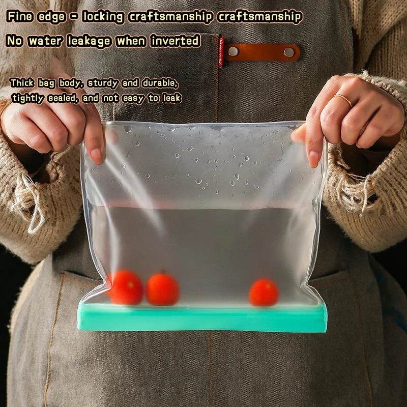 Bolsa reutilizable de silicona para almacenar alimentos, para la cocina, para frutas y verduras, para mantener la frescura, sellada para el congelador, a prueba de fugas, con cierre hermético.
