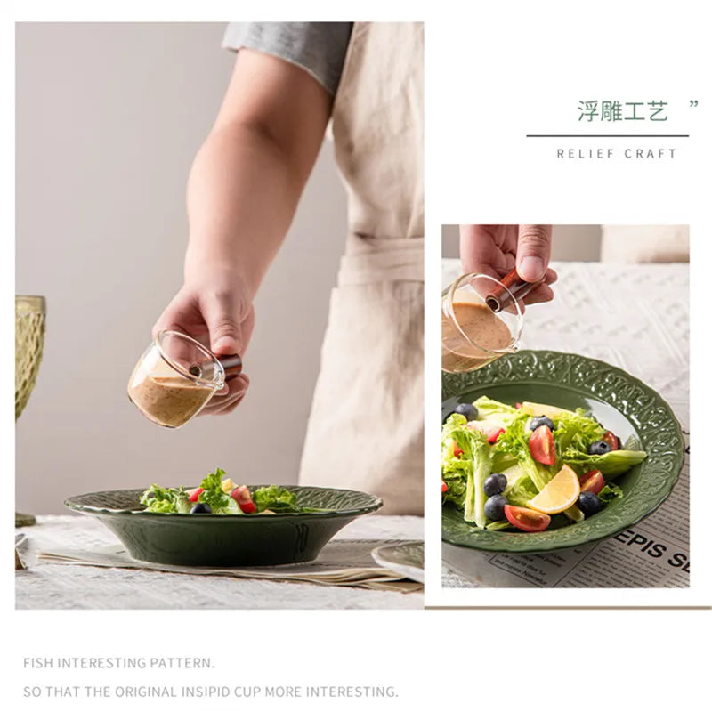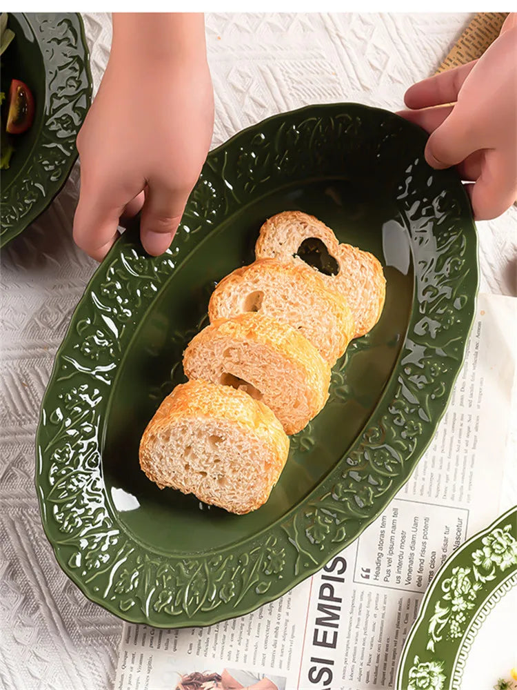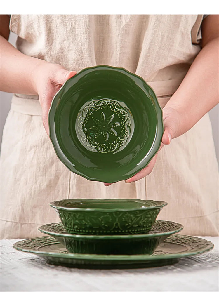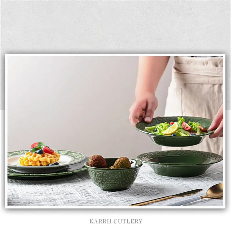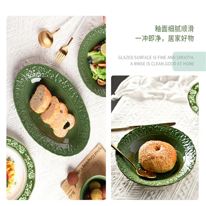 Nuevo juego de vajilla retro con plato de verduras y plato de pescado de cerámica combinado