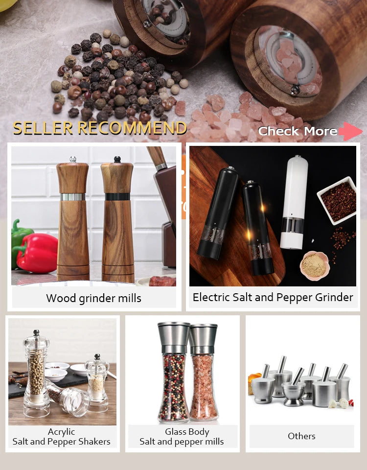 Fácilmente rellenable: el cuerpo del agitador de acrílico transparente resalta el nivel de sus especias y es fácil de rellenar, simplemente tire hacia arriba de la parte superior del molinillo de pimienta y rellénelo con los granos de pimienta de su elección.