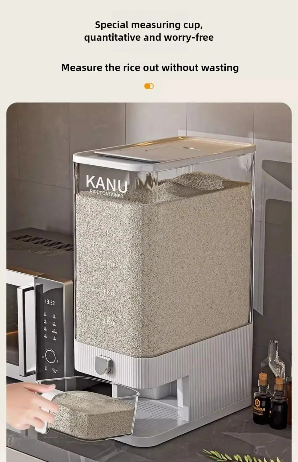 Its clear, structured design lets you monitor contents at a glance, while the sealed lid helps protect against moisture, pests and spills. Ideal for rice, grains, cereals and other dry ingredients, it brings order and efficiency to your kitchen storage.