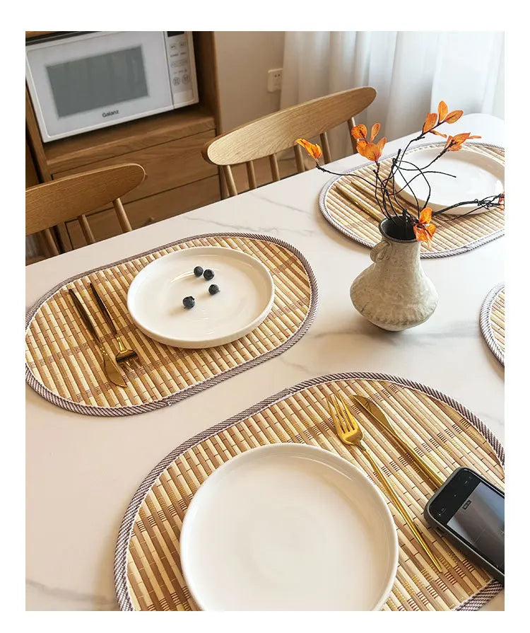 Crafted from 100% natural bamboo, our Woven Oval Table Mat brings elegance and warmth to your table setting. Inspired by Scandinavian design, it blends minimalist beauty with everyday functionality perfect for modern homes that value both aesthetics and sustainability.