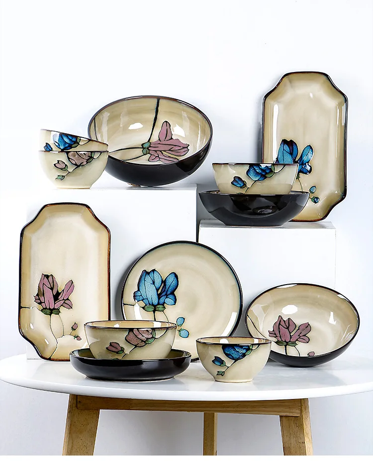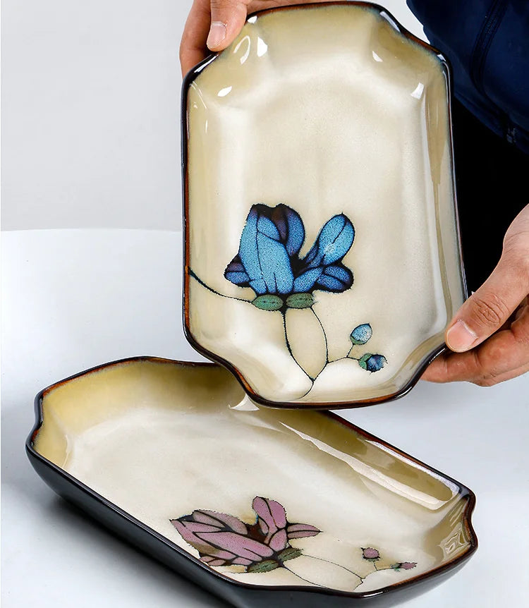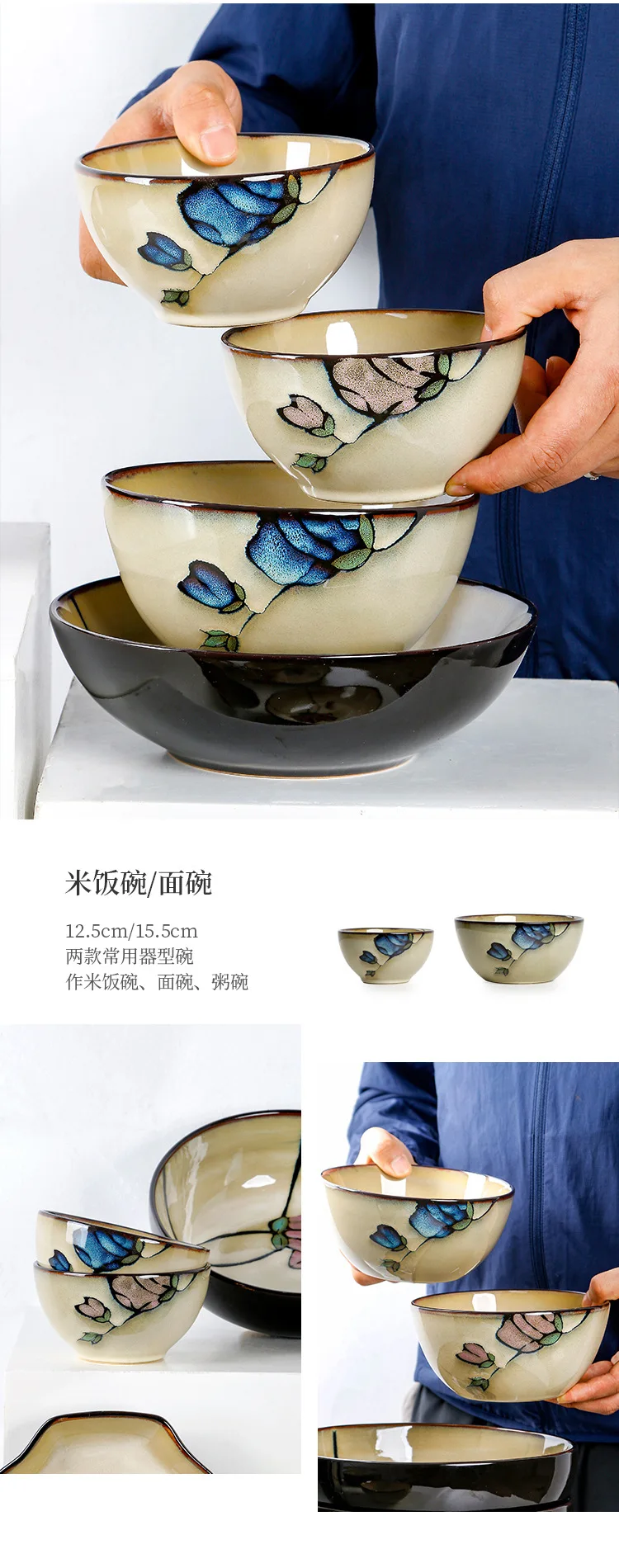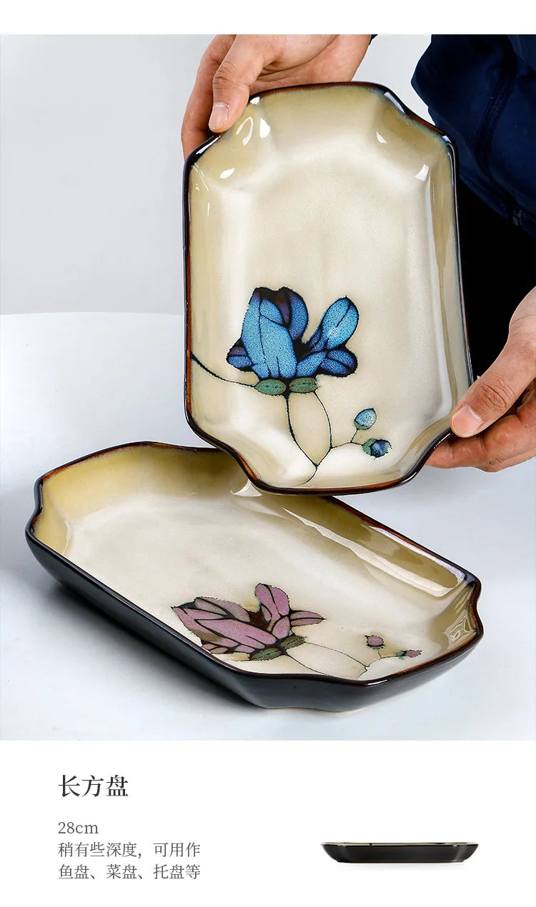 Hand Drawn Mulan Ceramic Plates, Fish Plates, Soup Bowls, Baking Pans, Rice Bowls, Snacks, Creative Retro Round Tableware